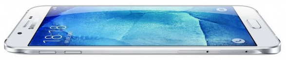 - جالكسي A8 هو أنحف هاتف تطلقه سامسونج وتبلغ أبعاده 158 × 76.8 × 5.9 mm ويزن 151 جرام وهو مصنوع من الألمنيوم بحواف معدنية شبيه بماهو عليه جالكسي اس 6.