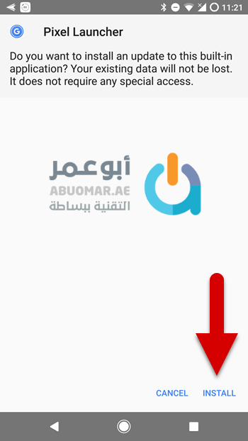 بهذه الحالة ستحصل على لانشر هاتف Pixel 2 الجديد على هاتفك الأندرويد مع شريط البحث في الأسفل وكامل الميّزات الخاصّة به.