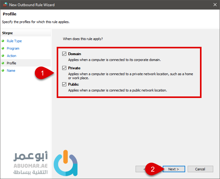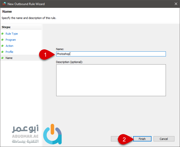 وبهذه الطريقة ستكون قد ضمنت أن البرنامج المطلوب سيتم منع جميع الطلبات الصادرة منه أو الواردة إليه من الاتصال بالانترنت بشكل كليّ.