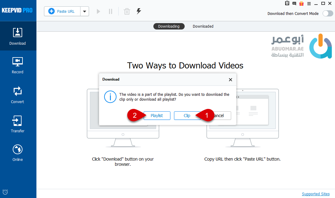 للاستفادة من خاصيّة Playlist ضمن برنامج KeepVid يجب عليك شراء النسخة الكاملة من البرنامج أو يمكنك الاستفادة فقط من ميّزة Clip في حال استخدام النسخة المجّانية منه.