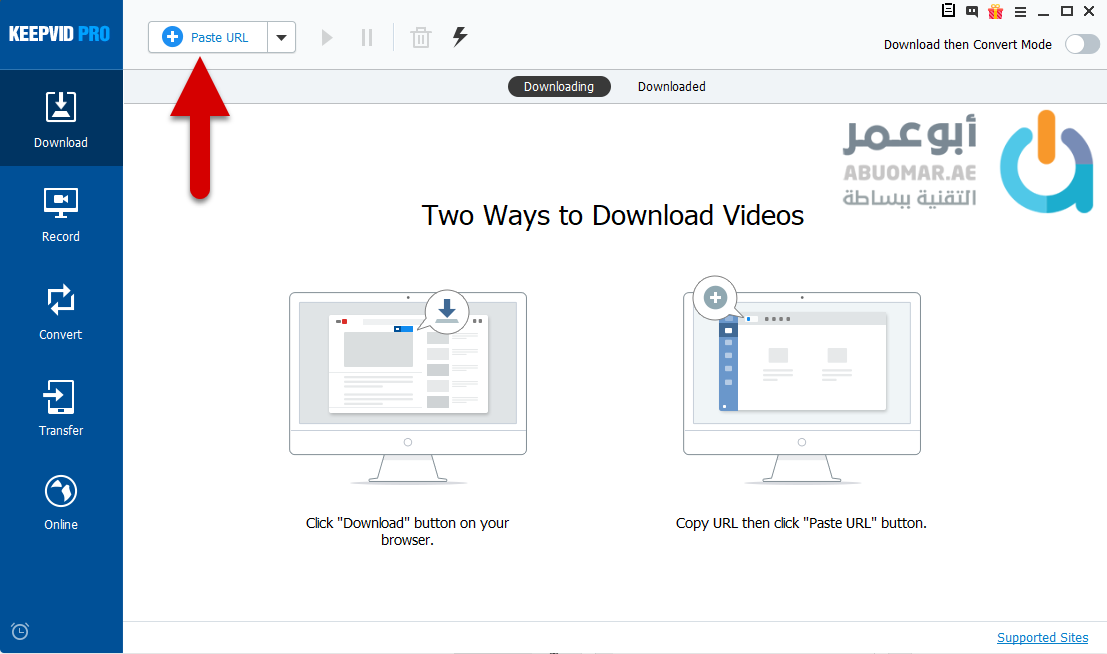 اذهب برنامج KeepVid واضغط على Paste URL