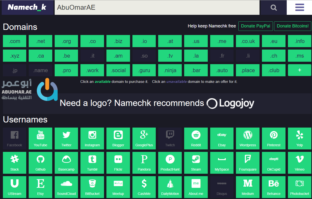 سيدأ الموقع مباشرة بالبحث عن اسم المستخدم في جميع مواقع التواصل الاجتماعي والخدمات المختلفة بالإضافة للمواقع بلوحقها كافّة وفي حال استخدام اسم المستخدم في موقع ما سيتحوّل لونه للأسود بينما سيبقى باللون الأخضر في حال عدم استخدامه.