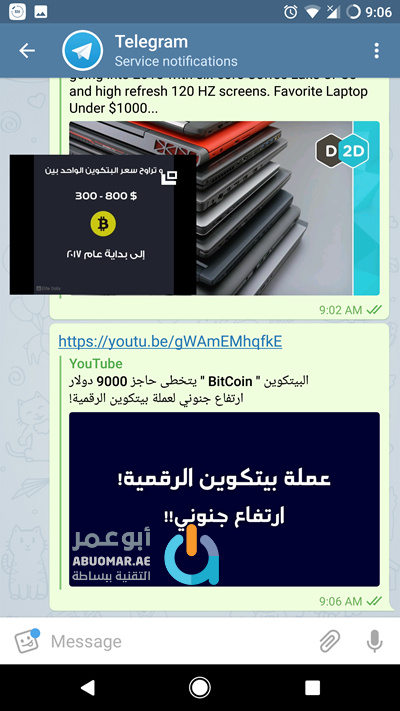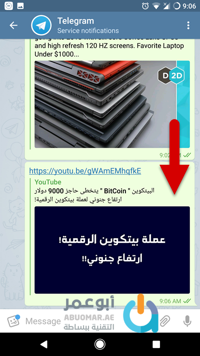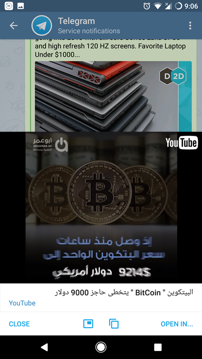 سيعمل الفيديو مباشرة ضمن تطبيق تليجيرام Telegram دون الحاجة لتشغيله في تطبيق يوتيوب ويمكنك إطفاء الشاشة في هذه الحالة وسيبقى الفيديو يعمل