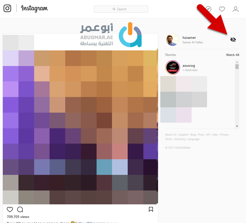 الآن وضمن القسم الخاص بالقصص المصوّرة ضمن الموقع ستلاحظ وجود الرمز التالي بجانب حسابك وبالضغط عليه يمكنك تفعيل ميّزة مشاهدة قصص انستقرام بشكل مجهول