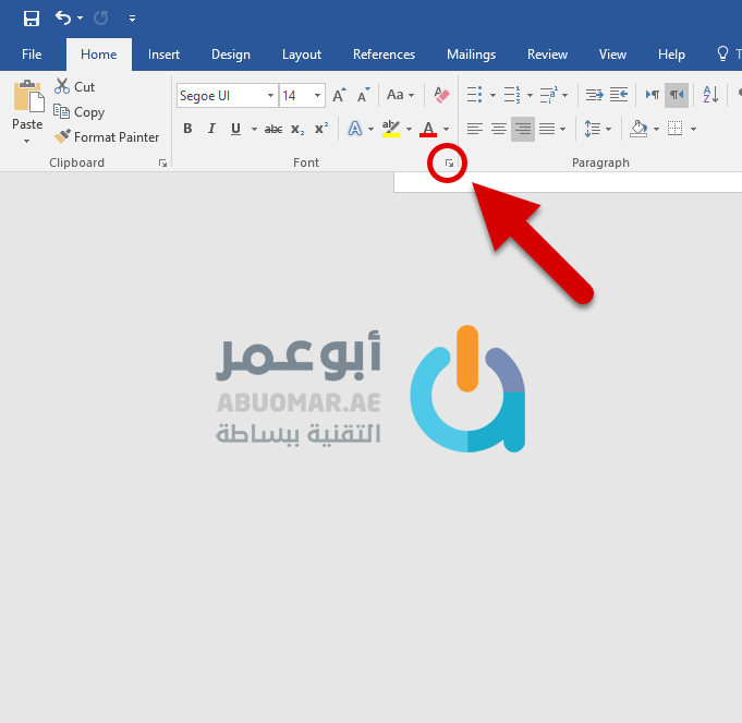 أو من نافذة البرنامج نفسه اضغط على السهم الموضّح في الصورة ضمن خيار الخط Font